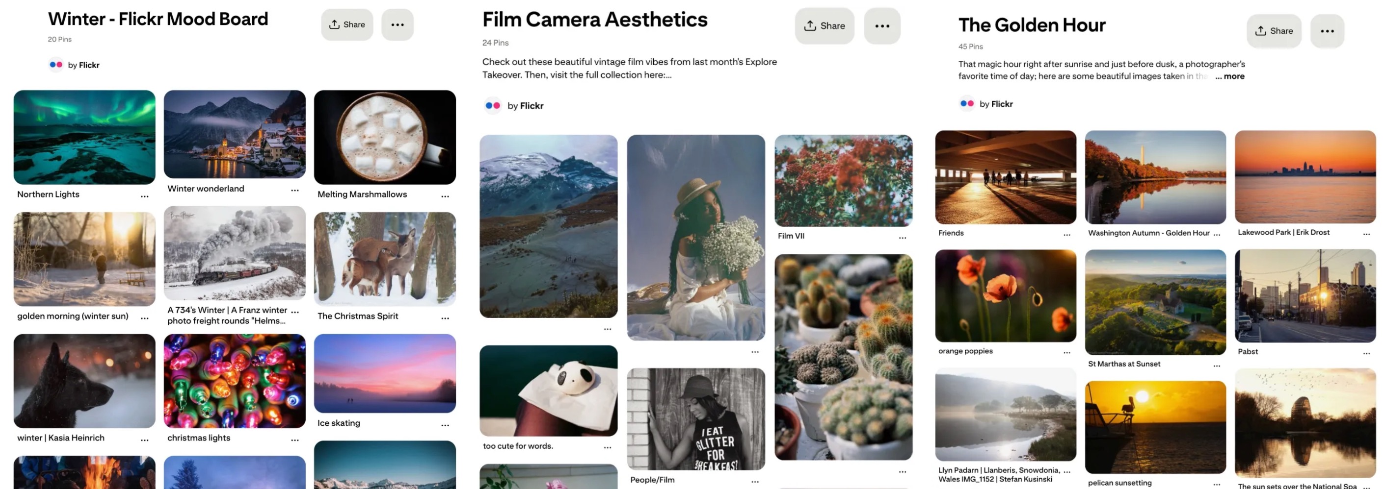 And finally, we invite you all to head on over to the official Flickr Pinterest account if you’d like to see more of our favorite Flickr photos. We’ve created a new Winter mood board along with one featuring some of last month’s Film Explore Takeover beauties.  If you love creating boards and saving Flickr photos that inspire you, don’t forget to use our built in share modal. It comes with its very own share to Pinterest button, which makes building a board on Pinterest from Flickr a breeze.